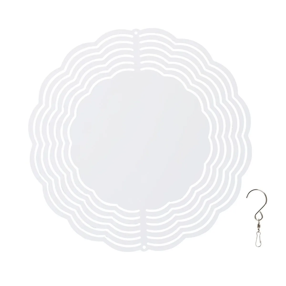 Windspiel aus Aluminium mit weißer, bedruckbarer Fläche auf beiden Seiten und Aufhänger. Lieferbar in zwei Größen. Diese außergewöhnliche, individuell bedruckbare Dekoration ist der perfekte Eyecatcher und bestens für Sublimation geeignet.