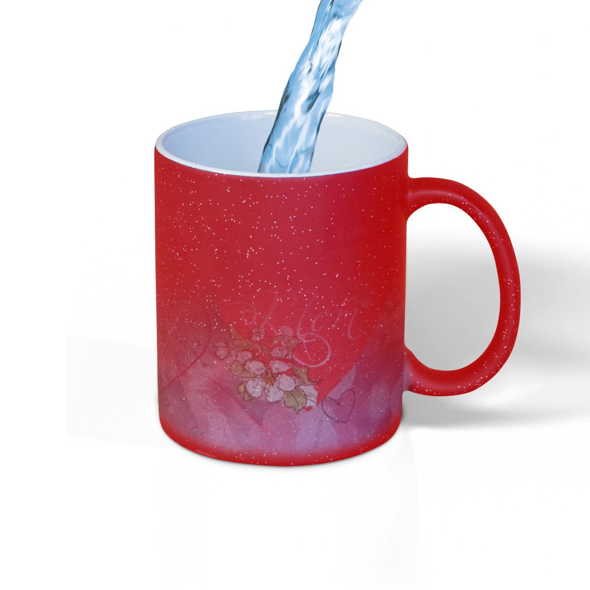 Überraschen Sie sich und Ihre Kunden mit dieser außergewöhnlichen, bunt glitzernden Farbwechseltasse, die bestens für Sublimation geeignet ist. Durch das Befüllen mit heißer Flüssigkeit ab 37 Grad wird die Tasse weiß und das von Ihnen aufgedruckte Motiv sichtbar. Lieferbar ist die Tasse in den Farben rot, blau und schwarz.