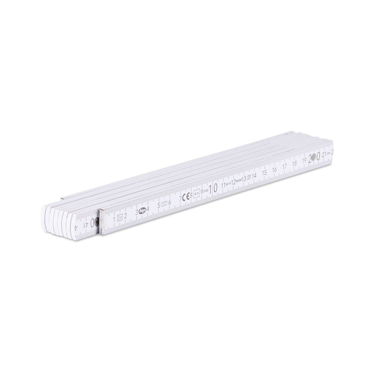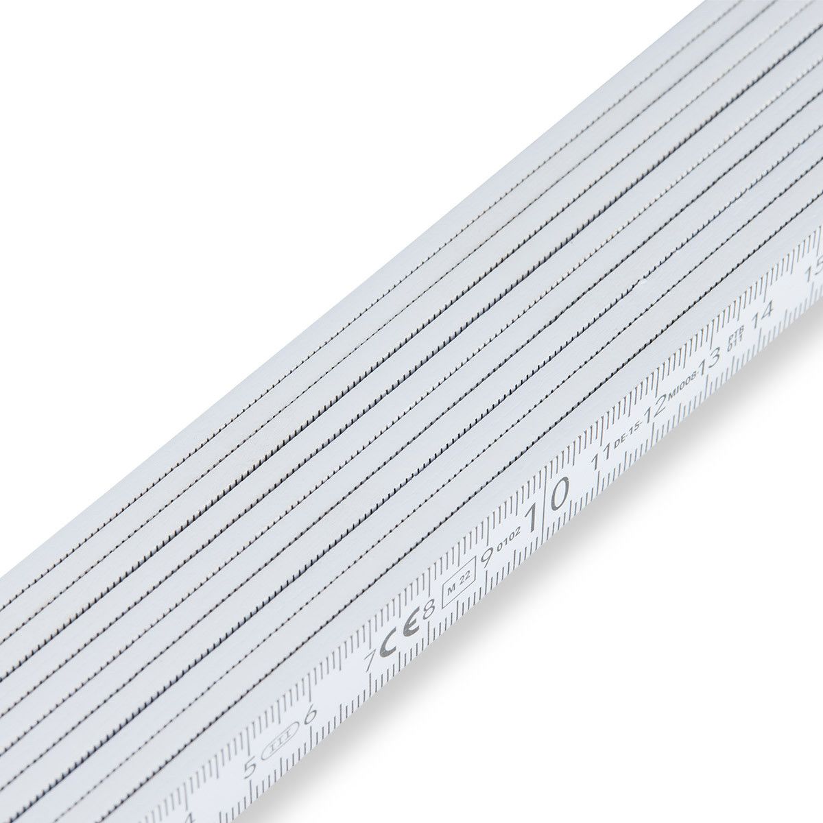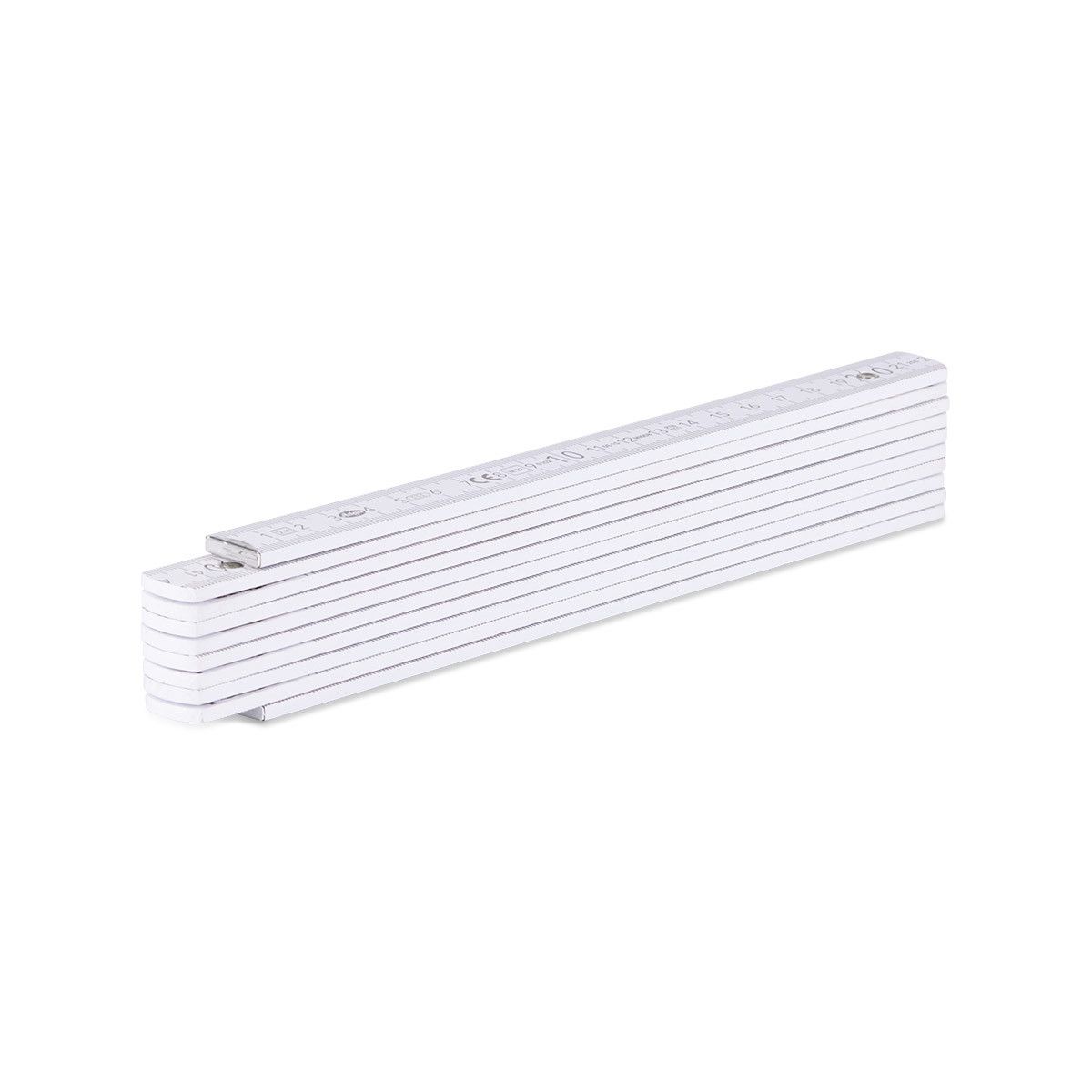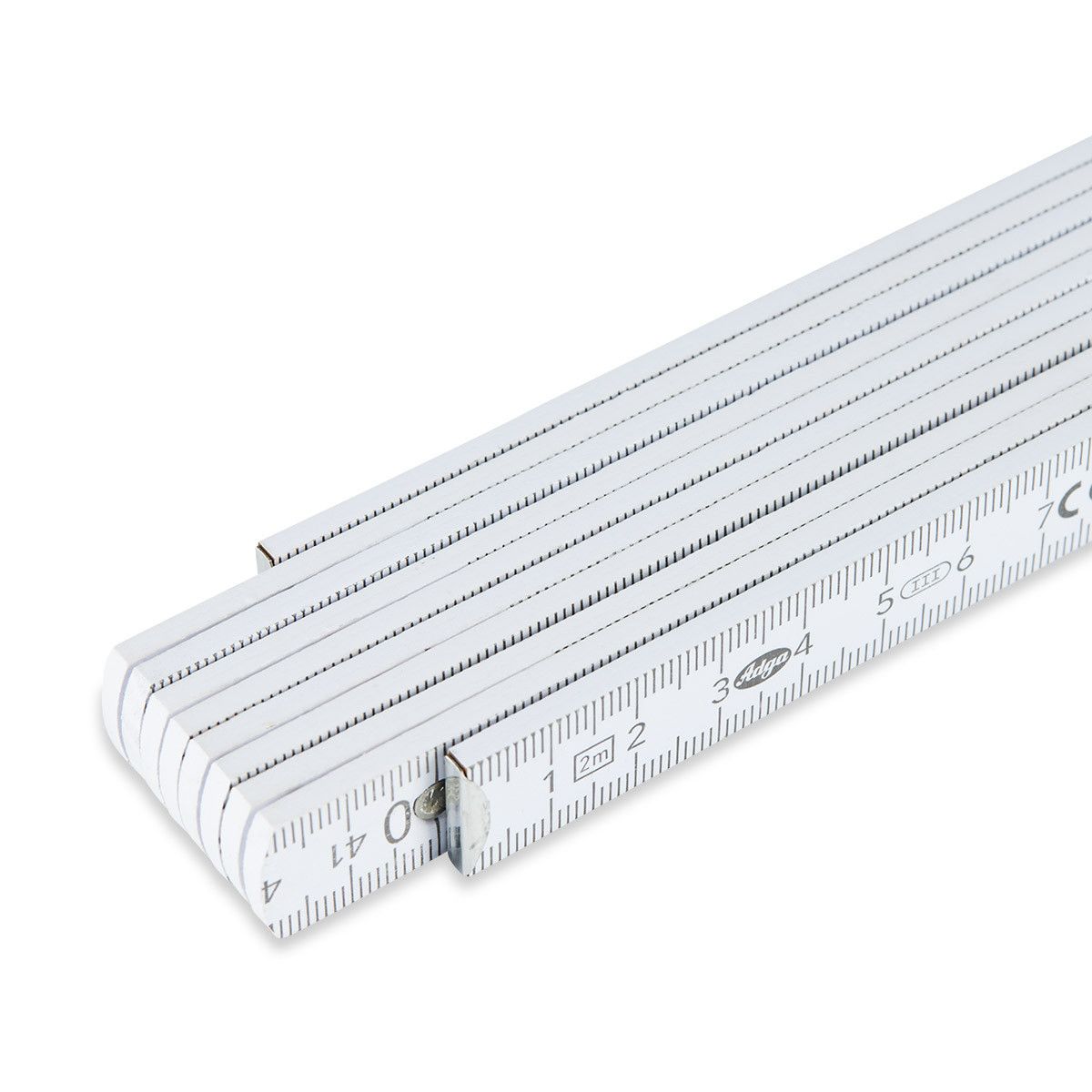 Hochwertiger Zollstock in weiß oder natur mit patentierter 90°-Rasterung, Made in Germany. Holzgliedermaßstab 2 m, 10 Glieder, Gelenke mit innenliegenden gehärteten Stahlfedern, Glieder ca. 3,4 x 16 mm. Mit 90°-Rastung. Serienmäßig mit Winkelübersicht auf der Innenseite des ersten Gliedes. Mit ADGA-Markenzeichen und CE-Kennzeichnung, bedruckbar.